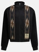 Felpa con zip "Kochi & Zaphyr" Kapital, realizzata con costruzione ibrida che alterna pannelli anteriori in tessuto jacquard con motivo geometrico e superfici lisce a contrasto. Struttura caratterizzata da maniche in velluto a coste medie, collo alto e chiusura frontale a zip integrale. Polsini e fondo elasticizzati a costine garantiscono stabilità alla vestibilità. Tasche laterali con zip nascosta sono integrate nelle cuciture; patch applicata sulla parte bassa del pannello frontale. Interno rifinito con tessuto liscio per maggiore comfort. Taglio rilassato con spalle leggermente scese.