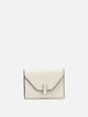 Portafoglio "Iside Trifold" Valextra in pelle di vitello Millepunte con struttura compatta e silhouette definita. La chiusura rettangolare in metallo lucido color oro chiaro costituisce il dettaglio di continuità della linea Iside. L'organizzazione interna prevede tre scompartimenti per carte con taglio a 'V', vano portabanconote e portamonete integrato con cerniera. Dettagli interni rifiniti a Inchiostro, bordatura nera laccata dipinta a mano secondo la tecnica Costa.