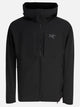 Arc'teryx "Gamma MX" sweatshirt. Fortius 2.0 stretch, windproof and water-repellent softshell construction composed of 84% nylon and 16% elastane with polyester interior. Regular fit silhouette features articulated long sleeves, contoured cuffs with low-profile elastic finish and helmet-compatible StormHood hood. The linear seams and fit allow for lightweight overlays, while the fabric provides breathability, insulation and wear resistance.