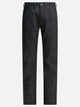 Buzz Rickson's "MA-1" jeans, constructed of original 13.6-ounce selvedge denim with a rough finish. They feature a structured silhouette, knotted stitching on the pockets, asymmetrical back yoke and rivetless coin pocket, a typical element of garments made during World War II. Selvedge is visible inside the pocket. Doughnut buttons with iron arabesque and hot-stamped leather label complete the structure.