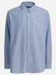 Carhartt WIP "L/S Cassel" shirt with loose fit, made of lightweight Oxford cotton. The structure of the shirt includes a button-down collar and inside back spur. The side seams are reinforced with gussets, while the striped pattern recurs throughout. An embroidery with the "C" logo is placed on the chest. The shirt is yarn-dyed and wash-tested.