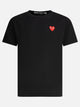 Comme Des Garçons Play heart logo T-shirt made from pure cotton fabric. Compact structure with straight silhouette, short sleeves and ribbed collar. Characteristic element is the applied embroidery on the chest, fidelity to the classic construction of the model. Clean knit stitch finish and finished inner seams.