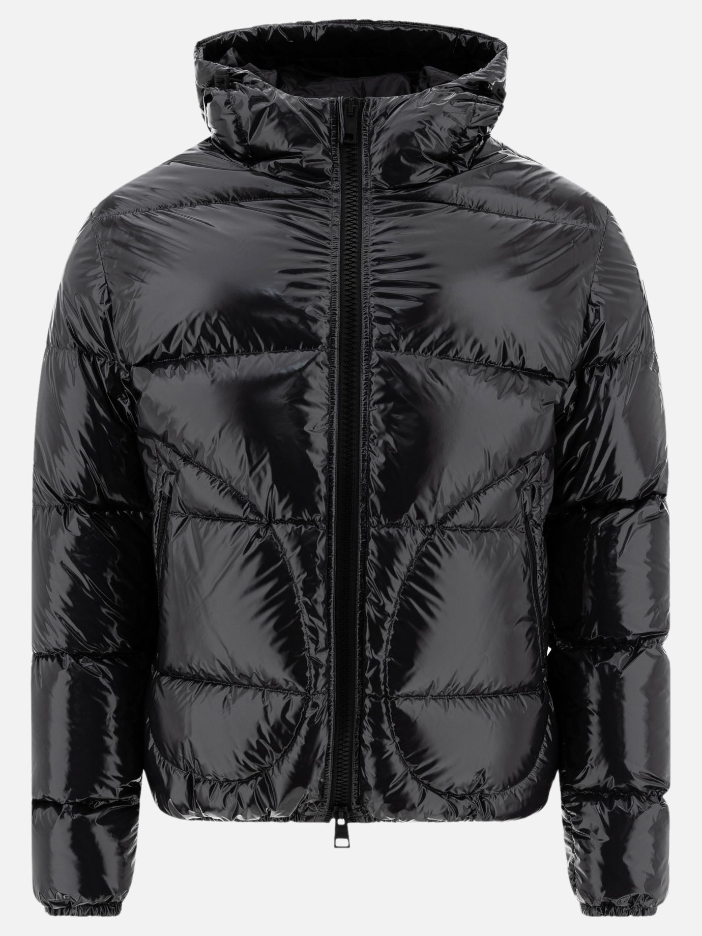 Herno's "Gloss" down jacket is the perfect addition to a modern, fashionable man's wardrobe. Made of highly polished lacquer-effect fabric, this bomber jacket enhances the brilliance of colors, giving a contemporary and sophisticated look. Ideal for those who want a garment that combines functionality and style without compromise.