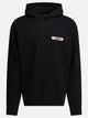 Jacquemus "Gros Grain" hoodie made of compact-textured cotton fleece. The model features a soft-cut silhouette with a linear profile, featuring an adjustable drawstring hood and ribbed cuffs and hem. The Jacquemus logo is applied with grosgrain ribbon embroidery on the chest, adding an identifying detail in the construction of the garment.