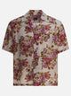 Kapital "Aloha" shirt made of silk and rayon-based fabric, with decorative Maria motif applied throughout. The construction features a soft, straight silhouette, characterized by a scooped collar stitched with regular topstitching. Tone-on-tone button front closure and slightly dropped shoulders. Cuff and side seam details are carefully finished for durability and straight construction.