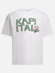 Kapital "Canoe Kapital" T-shirt features cotton construction, regular silhouette and ribbed crew neck. The front shows the KAP][TAL logo print, inspired by the leather labels on Kapital jeans. The print, composed of distinctive graphic characters, includes an outward-facing parenthesis and a stylized "L" to resemble a canoe, details that contribute to the garment's visual identity. Uniform surface finishing.