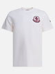 Moncler cotton T-shirt with a soft structure and straight silhouette. Made from a compact-weave cotton jersey fabric, it features short sleeves and a crew neck finished with linear beading. Moncler logo print visible on the chest, while a logo patch is applied on the left sleeve. Seam assembly is done with a flat finish to reduce thickness and maintain structural stability.
