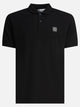 Stone Island organic cotton pique polo shirt. The construction features a compact fabric work, with a ribbed collar finished with a two-button closure. The short sleeves are complemented by ribbed trim, while the silhouette follows a regular line. The distinctive element is the Compass patch applied on the chest. Side slits at the bottom increase freedom of movement. Garment-dyed for uniform texture.