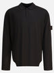 Stone Island wool polo sweater made of pure lightweight RWS-certified wool, knitted in a 14-gauge shaved knit. Long sleeve construction with linear construction, ribbed polo collar and central three-button closure. Ribbed finished edges on cuffs and bottom band, regular silhouette. Stone Island Ghost tone-on-tone badge applied on left sleeve.