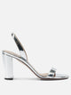 Aquazzura "So Nude Block 85 mm" heeled sandals with block structure and minimal silhouette. Upper made with mirrored leather effect surface, adjustable strap with slingback support and open toe opening. Padded leather insole, foot-contact lining, precise detailing finish. Construction devoid of decorative elements, set on essential geometric lines and uniform proportions.