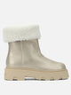 Moncler shearling "Aurea" ankle boots made of suede and sheepskin with a long pile. The shearling upper features a voluminous construction with a regular profile. The interior is lined with long-haired sheepskin for added thermal insulation. The outsole, made of TPU with EVA cushioning, is combined with a leather welt. Dynamic silhouette with accentuated volume and stable structure.