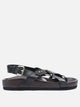 - Leather straps with crossover at front